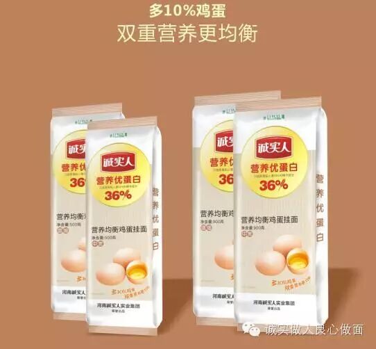 诚实人挂面采用每百克含13.0g蛋白质的河南优质小麦粉,多添加10%鸡蛋,动植物蛋白均衡搭配。